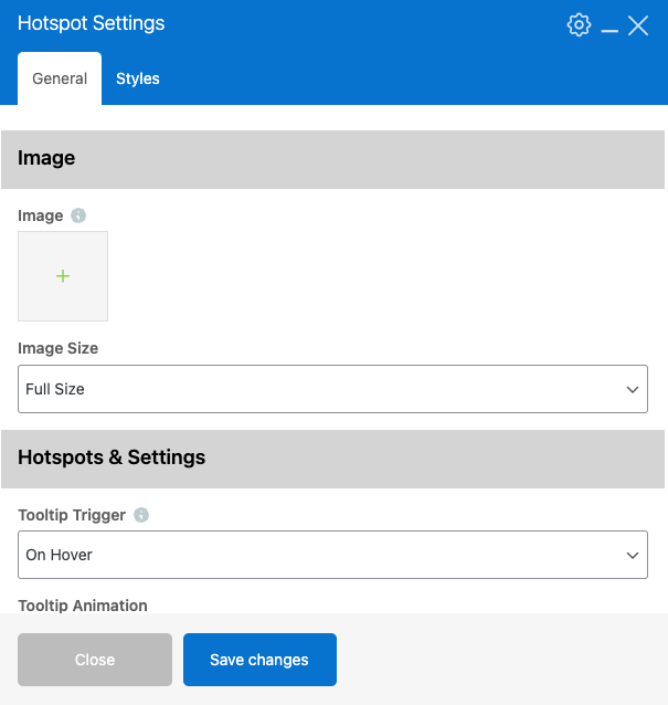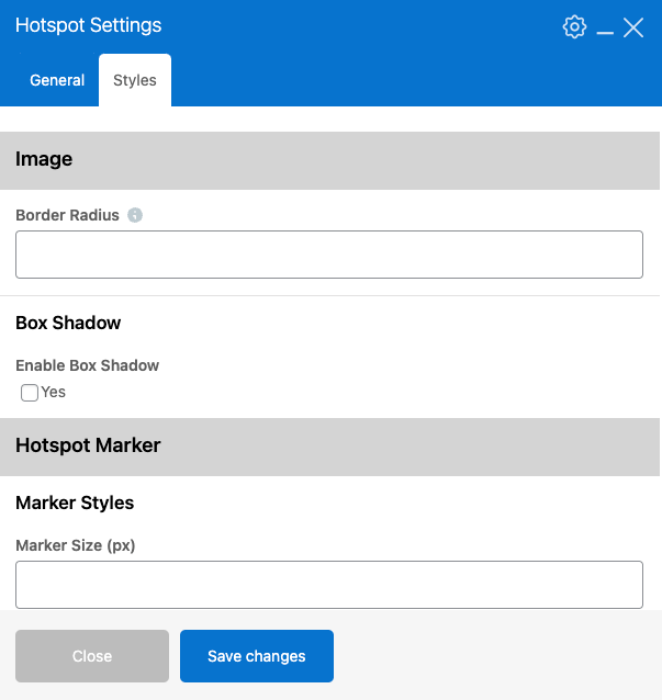 Here you can refine the look of each hotspot marker. Adjustments may include marker size, icon size, spacing, border styling, label typography, and color settings. These controls help you create markers that are clearly visible and fit seamlessly into your design.